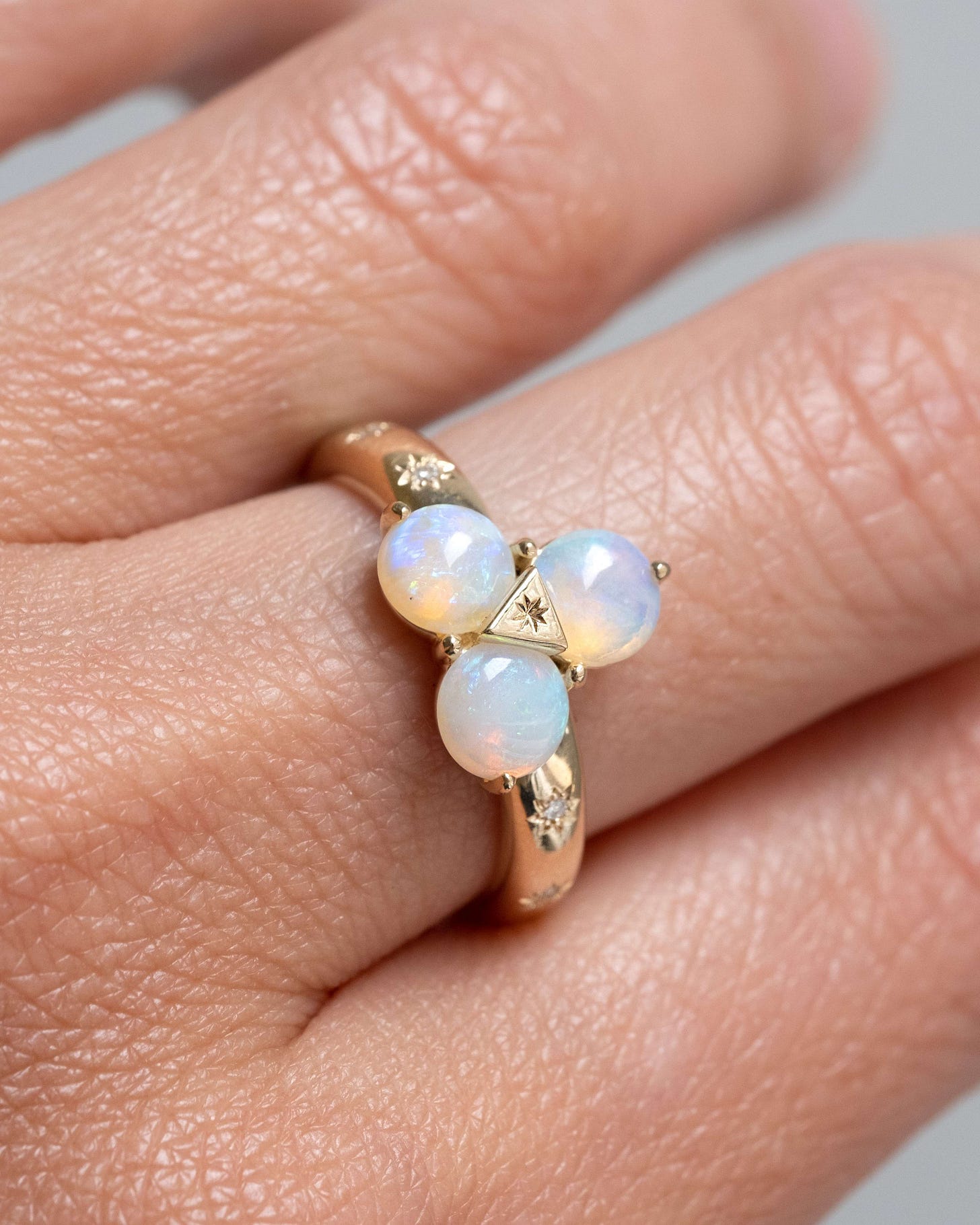 Opals are so beautiful, but unfortunately, are notoriously susceptible to chips, cracks, and crazing. Depending on your opal, we may be able to keep it in its original setting or take it to the lapidary to polish out small chips. As for repair, there isn’t exactly 2-part epoxy made for gemstones, but we’ve come up with fairly ingenious solutions for broken gems. — Hannah